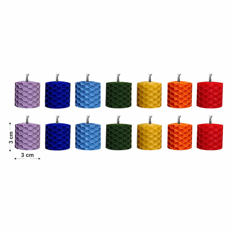14 عدد شمع سایز 3x3 سانتیمتر مخصوص استفاده روزمره به جای وارمرها بسته بندی اختصاصی کوچینو مخصوص استفاده روزمره رنگ بندی 7 رنگ چاکراه و تک رنگ
