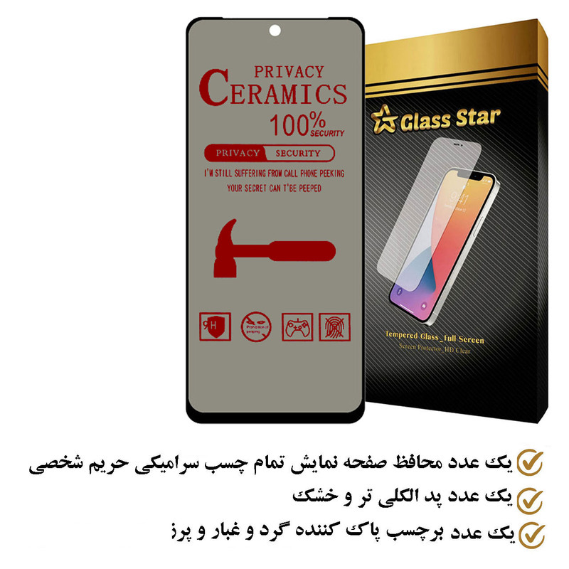 محافظ صفحه نمایش سرامیکی حریم شخصی گلس استار مدل PRIVATECRS مناسب برای گوشی موبایل شیائومی Redmi Note 12S