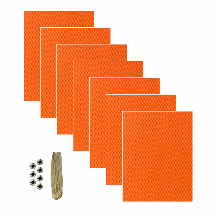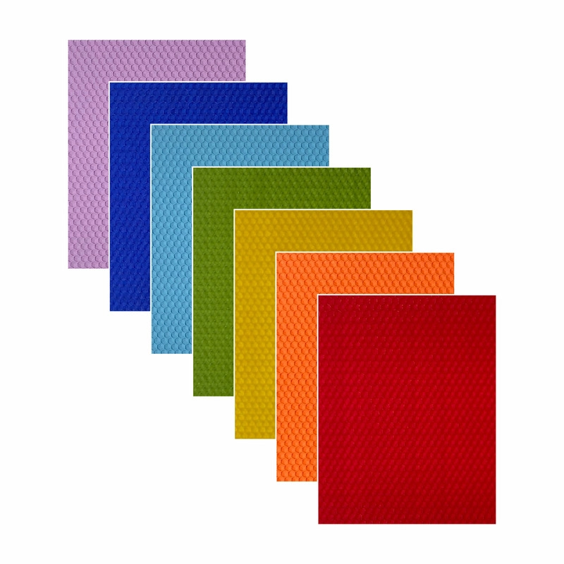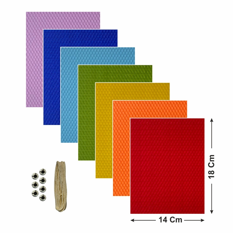 شمع های خودت را با دست خودت بساز پک خلاقیتی ساخت شمع های دست ساز از ورق شمع موم عسل طبیعی کوچینو 7 عدد در رنگ های مختلف و هفت رنگ و یا چند رنگ (رنگین کمان) با این ورقه های موم عسل در سایز 14 x 18 سانتیمتر به همراه فیتیله مورد نیاز و پایه فیتیله مورد نیاز که در بسته بندی وجود دارد برای ساخت شمع های موم عسل رول شده میتوانید به هر اندازه که مد نظر شما باشد ورقه های را برش دهید و با فیتیله گذاری و پایه فیتیله که در این پک محصول وحود دارد و گروه تولیدی کوچینو ملزومات مورد نیاز آن را در پک بسته بندی قرارداده است . شمع های زیبای خود را بسازید و از روشن کردن آن لذت ببرید . این ورق های موم عسل در رنگ های مختلف موجور است و مشهورترین 7 رنگ که ترکیبی از رنگ های رنگین کمان و یا همان هفت چاکراه میباشد قابل عرضه است . با این ورق های موم عسل در سایز 14 x 18 و فیتیله و پایه فیتیله مورد نیاز در هنر شمع سازی با دست و حرارت طبیعی دست خود بدون هیچگونه ذوب کردن و غیره را به آسانی و فقط با دست بسازید و لذت ببرید . این پک ها مناسب برای رشد خلاقیت کودکان و همچنین لذت بردن از شمع های دست ساز با ورقه های موم طبیعی عسل میباشد .