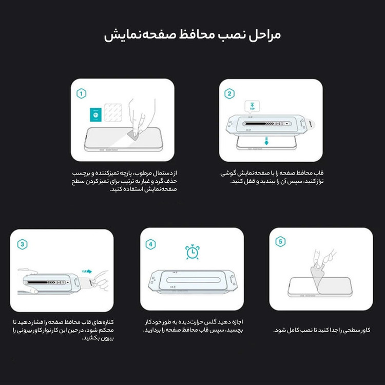 ویژگیها: 9H , قابلیت نصب آسان , مقاوم در برابر چربی و اثرانگشت , مقاوم در برابر خط و خش , نصب بدون حباب