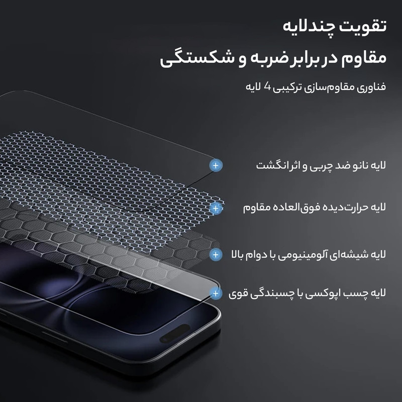 ویژگیها: 9H , قابلیت نصب آسان , مقاوم در برابر چربی و اثرانگشت , مقاوم در برابر خط و خش , نصب بدون حباب