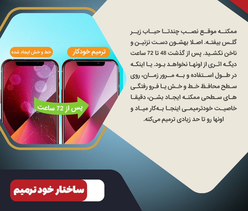 9H , جلوگیری از ایجاد خط و خش , قابلیت نصب آسان , مقاوم در برابر خط و خش , نصب بدون حباب