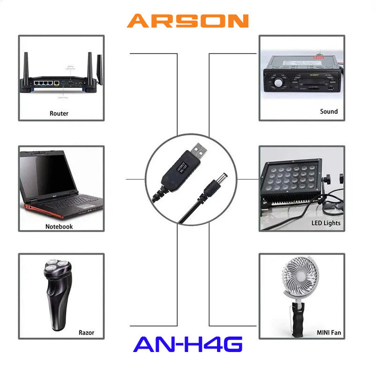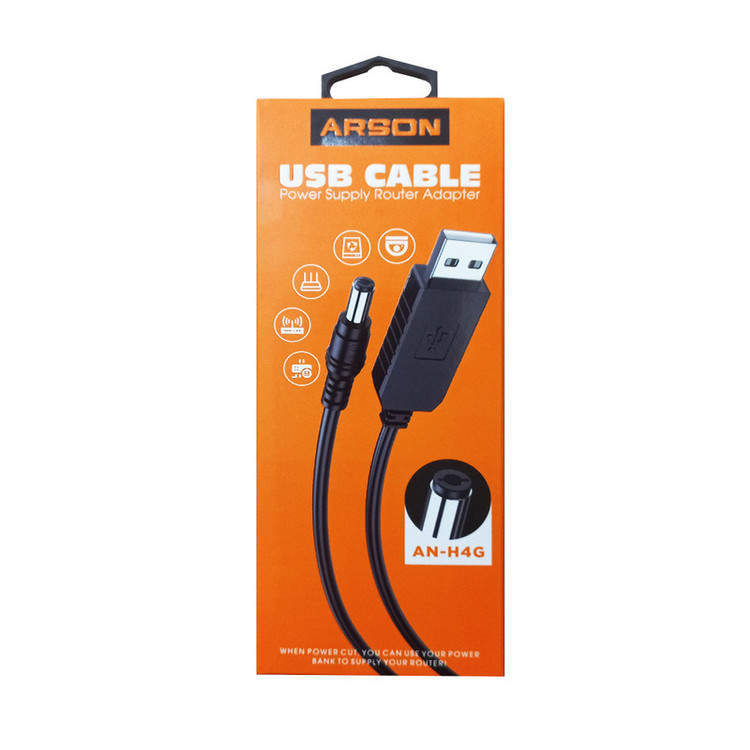 کابل USB به به DC آرسون (ARSON) مدل AN-H4G مناسب برای انتقال برق از USB به دستگاه میباشد. از این کابل برای کول پد و یا همان فن خنک کننده نوت بوک،اسپیکر،هاب USB، مبدل های تصویر ،تجهیزات رباتیک و یا هر دستگاه دیگر که دارای پورت DC باشد می توان استفاده کرد. این کابل با اتصال به اسپیکرهای سازگار، با ایجاد تامین انرژی قدرتمند، صدایی رسا از موسیقی دلخواهتان را پخش می کند. این مبدل دارای ورودی پورت USB می باشد و خروجی سیم آداپتوری 12 ولت می باشد، طول این کابل حدود 100 سانتی متر میباشد.