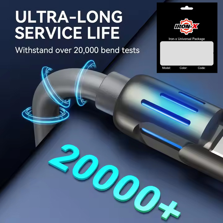 دارای لوگو iron-x بر روی برچسب کابل - همراه با بسته بندی iron-x همانند تصاویر ضمیمه شده در گالری تصاویر