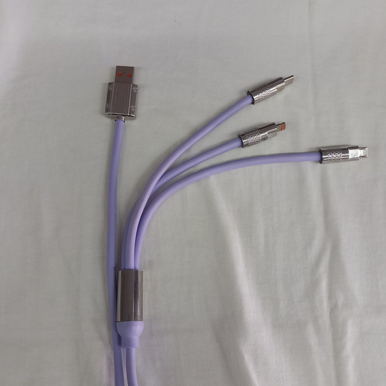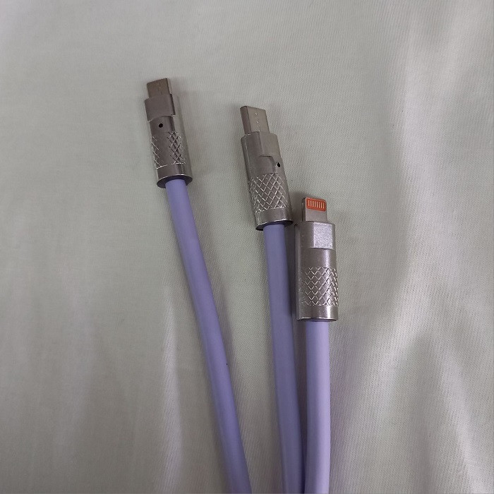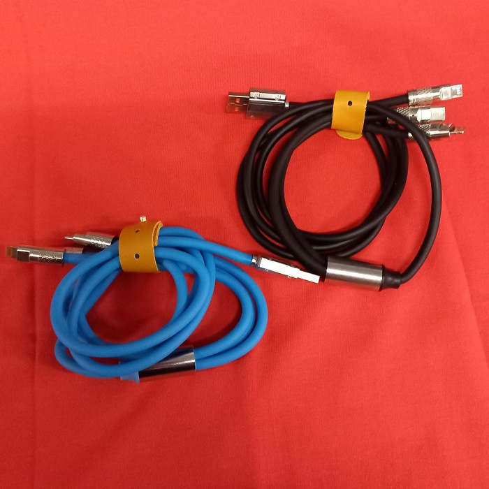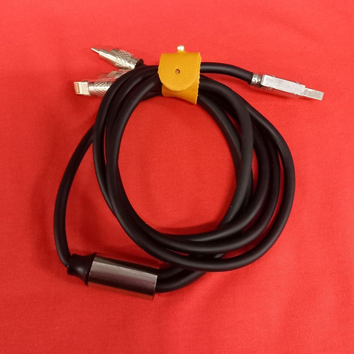 کابل سه سر با شارژ سریع و با یک رابط لایتینگ رابط تایپ سی و رابط میکرو یو اس بی چه آیفون چه سامسونگ هواووی وان پلاس یا هر گوشی هوشمند دیگری که داشته باشید با این کابل شارژ شیک ۳ در ۱ میتوانید دستگاه خود را با خیال راحت و سریع شارژ کنید
