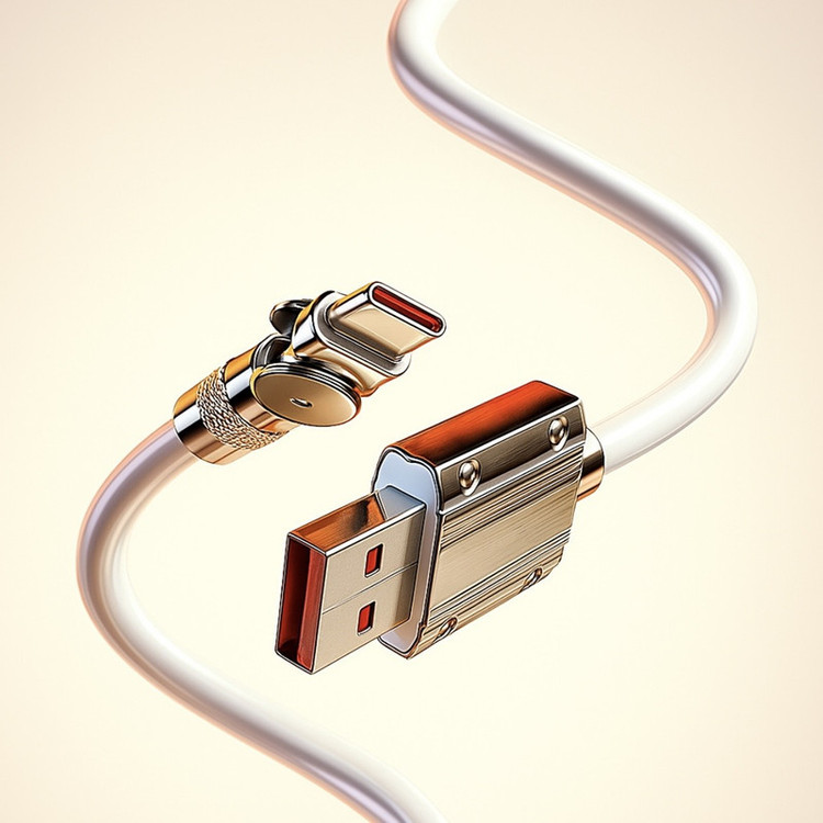 این یک کابل بسیار باکیفیت با سر چرخشی ۱۸۰ درجه ای است که با سرعت شارژ سریع در عمل شارژ شدن گوشی سهیم میشود این کابل شارژ قابلیت دیتا دارد و از ان برای انتقال اطلاعات نیز میتوان استفاده کرد در تولید کابل از تی پی ای استفاده شده و طولی برابر ۱۵۰ سانتی متر دارد و همچنین ضخامت کابل شش میلی متر است.