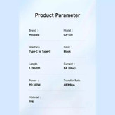 کابل تایپ سی Mcdodo CA-3310 Type C To Type C Transparent Data Cable Auto Off 1.2m 240W : کابل Mcdodo CA-3310 با طول 1.2 متر و حداکثر توان عبوری 240 وات با سیمی از جنس TPE و کانکتورهایی با پوشش شفاف انتخاب مناسبی برای کسانی است که از محصولات دارای پورت Type C استفاده می کنند. مشخصات کابل مک دودو CA-3310 : کابل مک دودو CA-3310 از آلیاژ روی و نایلون بافته شده ساخته شده است که دارای شارژ سریع و انتقال داده می باشد. کانکتور های به صورت شفاف ساخته شده و محتوای آن های قابل رویت است و سیم آن دارای پوششی از نایلون بافته شده و در برابر گره خوردن، کشش و سایش مقاوم است. به ادعای شرکت سازنده طراحی SR کانکتورها موجب شده تا در برابر 30000 مرتبه خم شدن و 10000 مرتبه متصل کردن و برداشتن مقاوم است. طول سیم کابل مک دودو CA-3310 برابر 1.2 متر است. کابل Mcdodo CA-3310 دارای هسته مس ضخیم است و حداکثر توان عبوری 240 وات و شدت جریان عبوری 5 آمپر ارائه می دهد و انتخاب مناسبی برای کسانی است که بخواهند شارژ سریع داشته باشند که برای لپ تاپ و تبلت نیز مناسب است. البته رسیدن به این ویژگی به شارژری که از آن استفاده می کنید و مدل گوشی شما هم بستگی دارد. کابل Mcdodo CA-3310 برای انتقال دیتا نیز مناسب است.همچنین سرعت انتقال دیتا 480mbps است که می توانید در کمترین زمان ممکن اطلاعات را به سیستم نیز انتقال دهد.