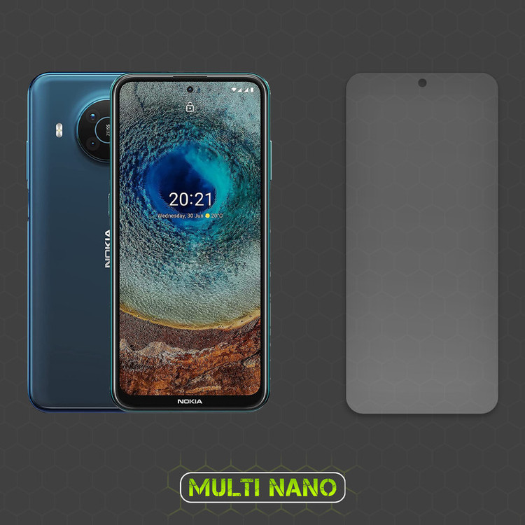 محافظ صفحه نمایش نانو Multi Nano ، گلسی باساختار مات و بدون حاشیه رنگی که توسط فناوری نانو ساخته شده و از ضخامت 0.2 میلی متری برخوردار است.(شیشه ای و تلق نمی باشد) و بخاطر نانو بودن باعث مقاومت بسیار بیشتر در برابر ضربه نسبت به گلس های معمولی است، همچنین کاملا نشکن است و در صورت برخورد ضربه نخواهد شکست. مات بودن این گلس باعث میشود تا نور روی صفحه پخش شود. از صفحه نمایش گوشی موبایل (نوکیا ایکس 20) در برابر ضربات احتمالی , خط و خش و... محافظت میکند. محافظ صفحه نمایش مات نانو مولتی نانو قسمت های خمیده (curved) صفحه گوشی را پوشش نمیدهد اما برای گوشی هایی که خمیدگی ندارند، صفحه نمایش را به خوبی پوشش میدهد. با توجه به ضخامت کم این محصول نسبت به گلس های 3 میل، برای گوشی هایی که حسگر اثر انگشت آن روی صفحه نمایش تعبیه شده اند، نیز پیشنهاد میشود.