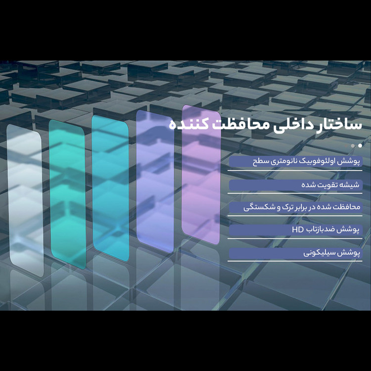 ویژگیها: 9H , جلوگیری از انعکاس نور , قابلیت نصب آسان , مقاوم در برابر چربی و اثرانگشت , مقاوم در برابر خط و خش , نصب بدون حباب