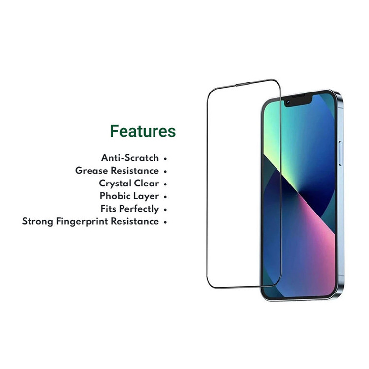 ۹H| جلوگیری از انعکاس نور | قابلیت نصب آسان | مقاوم در برابر چربی و اثر انگشت | مقاوم در برابر خط و خش | نصب بدون حباب | مناسب برای آیفون 14 / 13PRO / 13 | دارای دستمال تمیز کننده صفحه نمایش