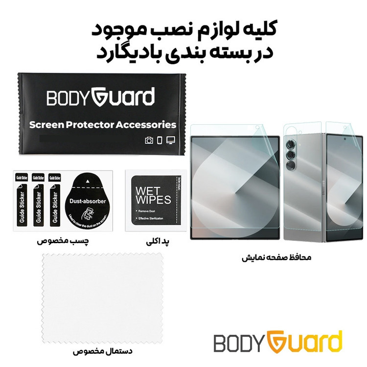 مشخصات دیگر: انعطاف پذیر - نصب بدون حباب - محافظ صفحه نمایش بزرگ - محافظ صفحه نمایش کوچک - محافظ بدنه پشت گوشی - تمام لوازم مورد نیاز نصب داخل بسته بندی