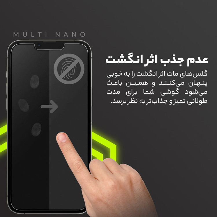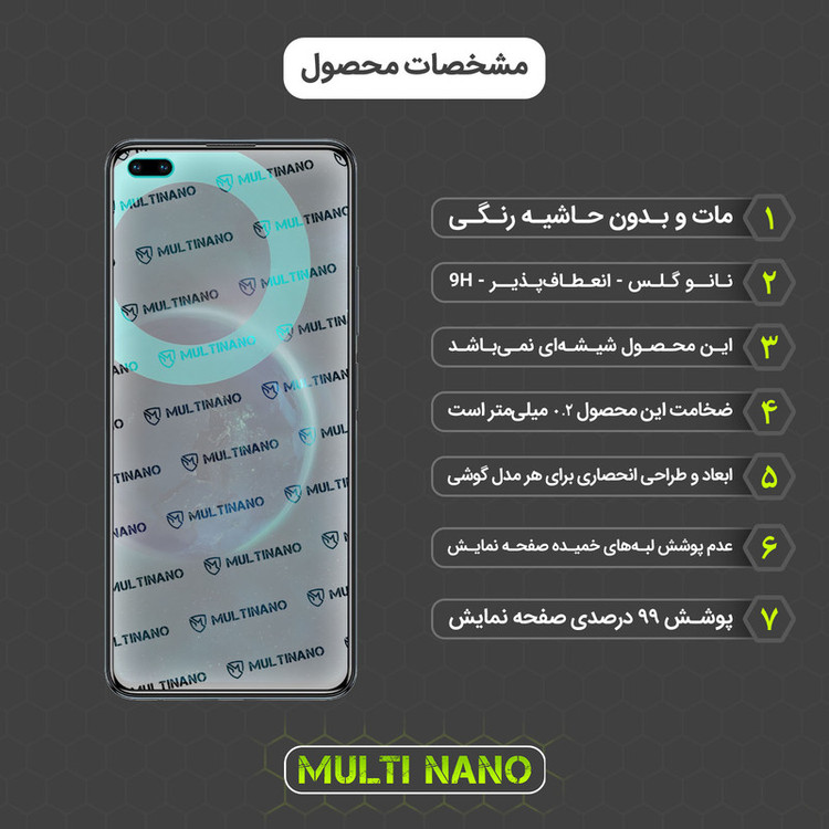 ویژگیها: 9H , جلوگیری از انعکاس نور , مقاوم در برابر چربی و اثرانگشت