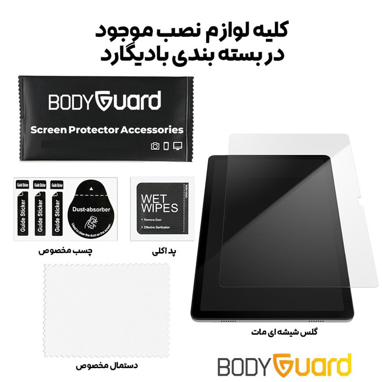 گلس شیشه ای مات - لمس بسیار روان - جذب اثر انگشت کم - کمترین انعکاس نور محیط - تمام لوازم مورد نیاز نصب داخل بسته بندی