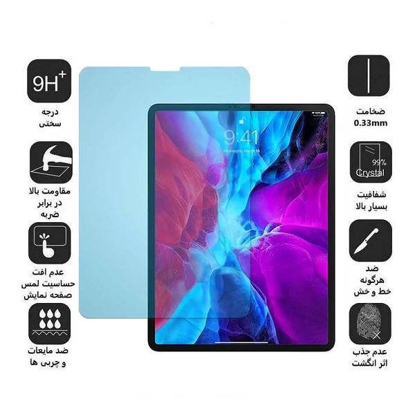 ویژگیها: 9H , جلوگیری از انعکاس نور , قابلیت نصب آسان , مقاوم در برابر چربی و اثرانگشت , مقاوم در برابر خط و خش , نصب بدون حباب