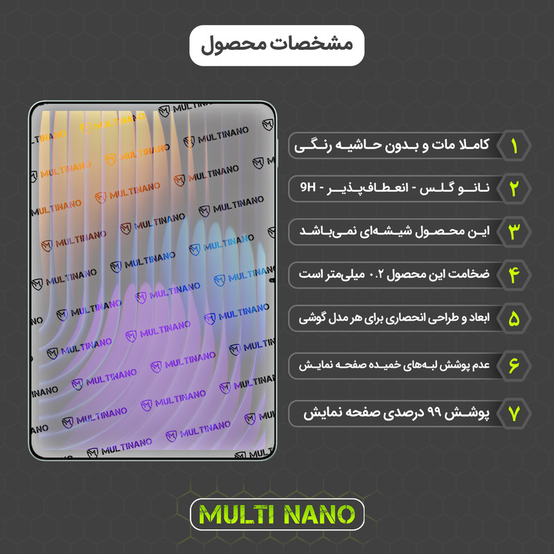 محافظ صفحه نمایش مات Multi Nano، به طور اختصاصی طراحی شده تا از صفحه نمایش تبلت شیائومی Pad 7 11.2 inch شما در برابر خطرات احتمالی به بهترین شکل محافظت کند. مواد تشکیل دهنده این محافظ (مواد سیلیکونی، نانو و مقداری شیشه) با استفاده از تکنولوژی نانو به صورت فشرده ساخته شده که باعث دفع ضربه و جلوگیری از آسیب به صفحه نمایش میشود. این محافظ با ساختار مات و بدون حاشیه رنگی، ضخامت 0.2 میلیمتر و فناوری نانو، مقاومت بسیار بالایی در برابر ضربه دارد و کاملاً نشکن است. طراحی مات آن سبب میشود که ضد چربی و ضد اثر انگشت باشد، بنابراین صفحه نمایش شما همیشه تمیز و واضح باقی میماند. این محافظ بدون حاشیه مشکی است، به طوری که پوشش کاملی از صفحه نمایش را فراهم کرده و از اختلال در کارکرد سنسورها جلوگیری میکند. همچنین، برش دقیق اطراف دوربین سلفی به گونهای انجام شده که هیچ تداخلی در عملکرد دوربین یا سنسورهای مجاور ایجاد نکند. همچنین، با استفاده از این محافظ، تجربه بهتری از عملکرد قلم تبلت خود خواهید داشت. لوازم نصب با بستهبندی متناسب و جذاب، حس لوکس و خاصی را در هر بار استفاده از این محصول به کاربران هدیه میدهد.