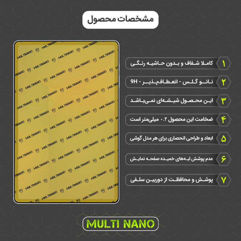 9H , مقاوم در برابر خط و خش , مقاوم در برابر چربی و اثرانگشت , نصب بدون حباب , صفحه نمایش