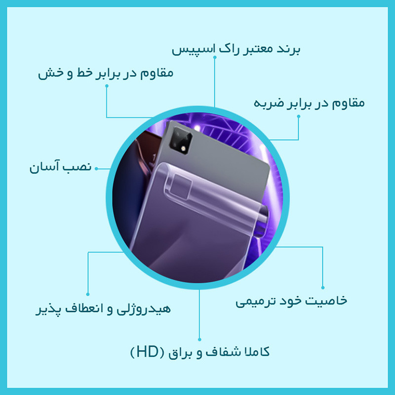 اگه میخوای همزمان از بدنه اصلی تبلت و صفحه نمایش گرون قیمتش مراقبت کنی و اون و در برابر خط و خش و ضربههای احتمالی بیمه کنی نیاز به یک محافظ تمام عیار با پوشش خوب داری. پیشنهاد ما محافظهای پشت و رو از برند معتبر راکاسپیس هست. این محافظ کاملا شفافه و تغییری در ظاهر تبلت ایجاد نمیکنه. علاوه بر اون به راحتی قابل استفاده و نصبه. طراحی زیبا و الاستیک اون، باعث میشه که به خوبی با شکل تبلت هماهنگ بشه و مثل یک پوسته محافظ عمل کنه. ضمنا اصلا ضخیم نیست و می تونید همزمان با کاور هم استفاده کنید.