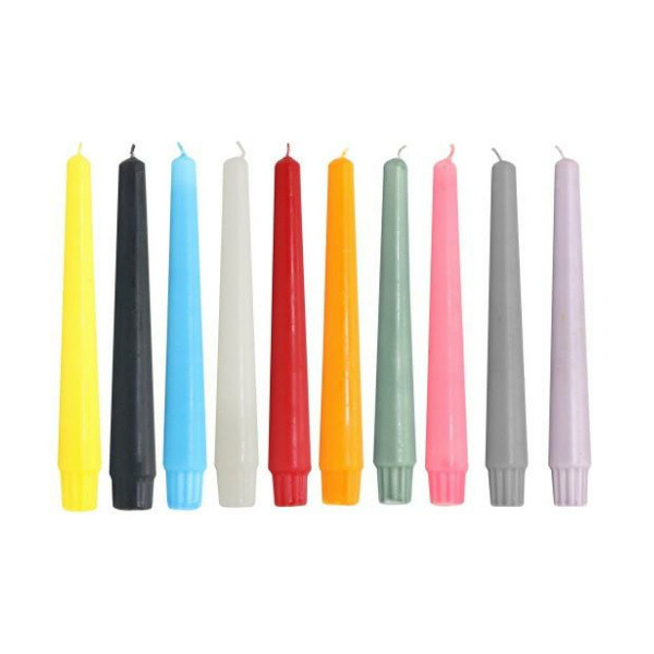 شمع قلمی 20 سانت در بسته بندی 12 عددی در 10 رنگ زیبا بدون اشک و دود میباشد. مدت زمان سوخت حدود 5تا6 ساعت میباشد. این شمعها رنگ شده به صورت دیپ میباشد که دارای سطحی صاف و شفاف بوده