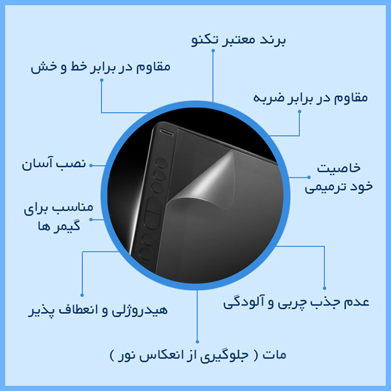 سایر مشخصات: برند معتبر تکنو – یکدست و بدون حاشیه رنگی - خودترمیم - جلوگیری از انعکاس نور - سرعت تاچ بالا - نصب آسان - ضد لکه و چربی اثرانگشت - کیفیت بالا - قبل از نصب کلیپ آموزشی را در اینترنت مشاهده فرمایید .