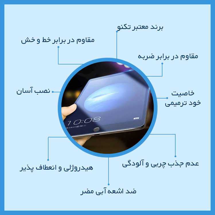 جلوگیری از انعکاس نور , قابلیت نصب آسان , مقاوم در برابر خط و خش , مقاوم در برابر چربی و اثرانگشت