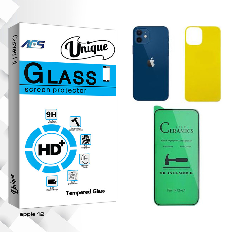 محافظ صفحه نمایش سرامیکی ای اف اس مدل Unique مناسب برای گوشی موبایل اپل iphone 12 به همراه محافظ پشت گوشی