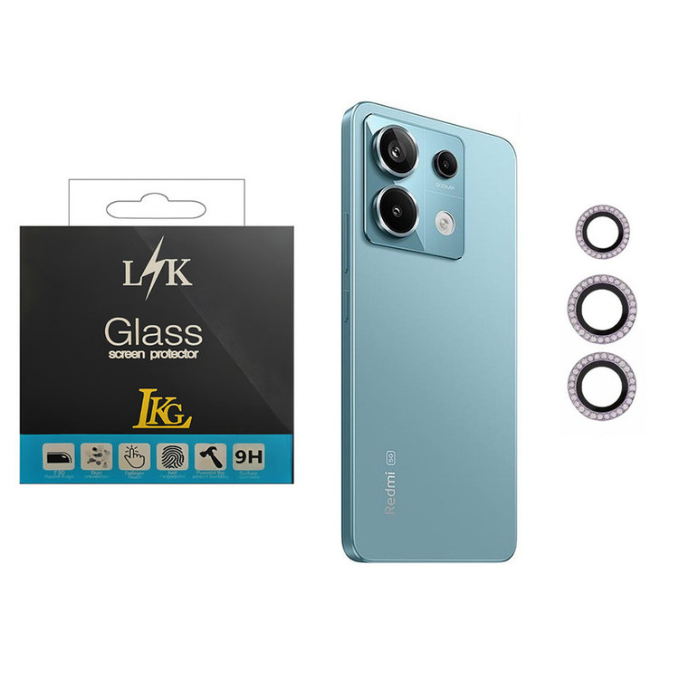 محافظ لنز دوربین هوشا مدل نگین دار مناسب برای گوشی موبایل شیائومی Redmi Note 13 Pro 5G دارای دو محافظ برای لنز