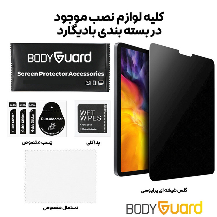 گلس شیشه ای پرایوسی - پد الکلی - دستمال پارچه ای - چسب پرزگیر