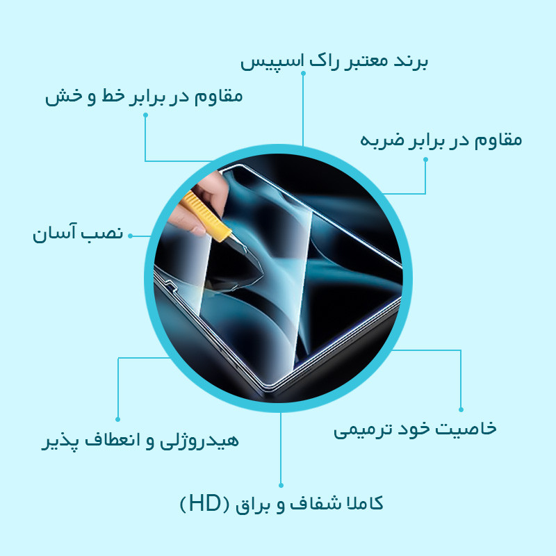 ویژگی‌ها : قابلیت نصب آسان , مقاوم در برابر چربی و اثرانگشت , مقاوم در برابر خط و خش