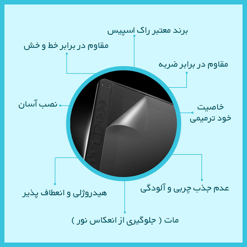 ویژگی‌ها : جلوگیری از انعکاس نور , جلوگیری از ایجاد خط و خش , قابلیت نصب آسان , مقاوم در برابر چربی و اثرانگشت , مقاوم در برابر خط و خش