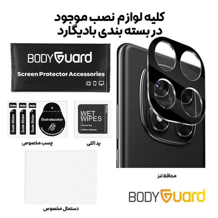 گلس شیشه ای دوربین - پوشش تمام فضای دوربین - تمام لوازم مورد نیاز نصب داخل بسته بندی