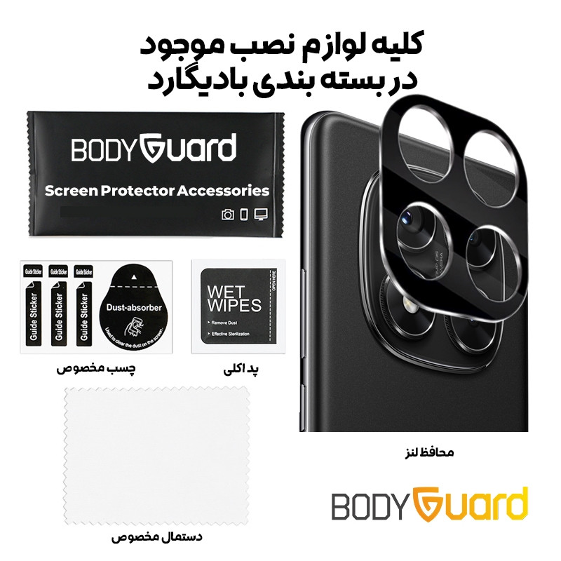 گلس شیشه ای دوربین - پوشش تمام فضای دوربین - تمام لوازم مورد نیاز نصب داخل بسته بندی