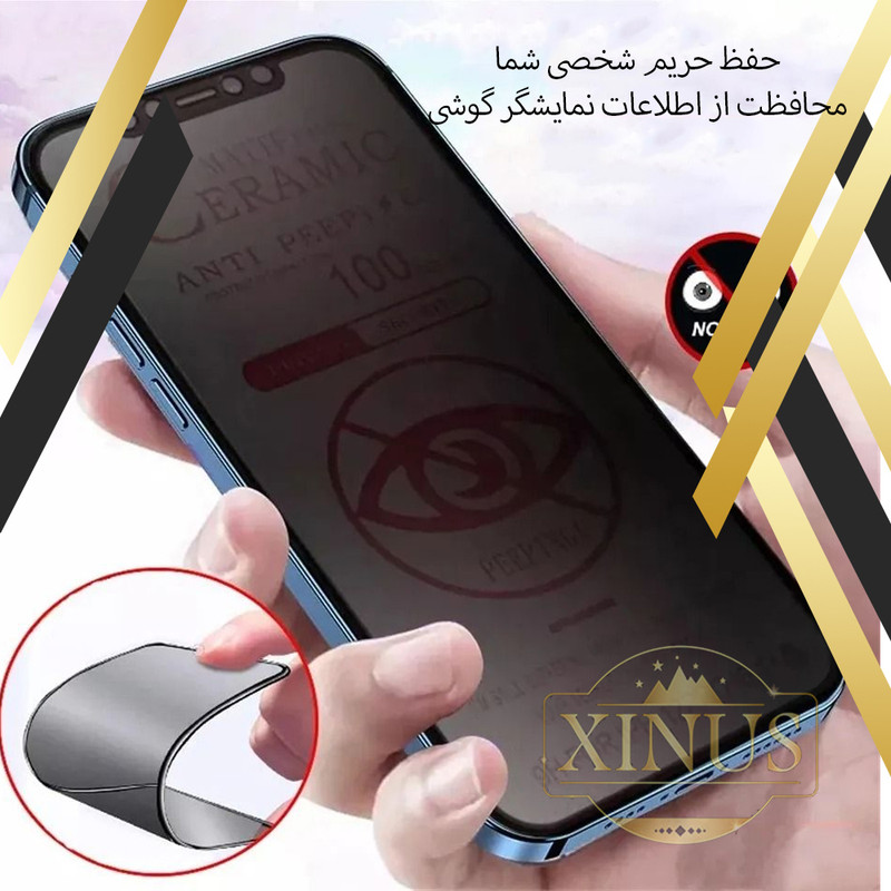 محافظ صفحه نمایش سرامیک پرایوسی تمام صفحه نمایش را به خوبی پوشش می دهد. به دلیل ضخامت کم تاثیری بر عملکرد تاچ گوشی شما ندارد. این نوع محافظ صفحه کاملا انعطاف پذیر است و هرگز نمی شکند.محل قرار گیری سنسورها بسیار دقیق برش خورده و گلس به خوبی روی صفحه گوشی قرار می گیرد. این محصول علاوه بر پوشش سراسری، از ایجاد خط و خش روی صفحه نیز به خوبی جلوگیری می کند و البته مهم ترین ویژگی آن حفظ حریم شخصی شماست. به این صورت که فرد دیگری به جز کاربر نمی تواند صفحه نمایش گوشی را ببیند. بنابراین با استفاده از محافظ صفحه سرامیک پرایوسی در اماکن عمومی هیچ نگرانی از دیده شدن صفحه گوشی خود توسط دیگران نخواهید داشت. نصب این نوع گلس نیز به نسبت راحت تر بوده و با دقت توجه می توان آن را به خوبی نصب کرد.
