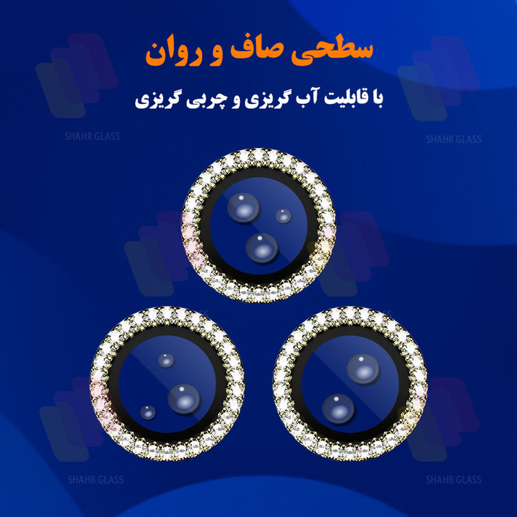یکی از لوازم جانبی گوشی تلفن همراه محافظ لنز دوربین است که لنز دوربین را در برابر خط و خش و ضربات احتمالی محافظت می کند. محافظ لنز به راحتی روی دوربین گوشی نصب می شود و طوری طراحی شده است که وضوح تصاویر عکاسی شده هیچ تغییری نمی کند. برش های بسیار دقیق این مدل نیز نصب و جداسازی آسان گلس را در پی خواهد داشت. میزان مقاومت و سختی شیشه این محافظ در بالاترین سطح و از نوع 9H بوده و ضد خط و خش می باشد. محافظ لنز مدل رینگی نگین دار به طور کامل روی لنزهای دوربین گوشی شما را می پوشاند، همچنین این محافظ لنز با توجه به تنوع رنگبندی و نگین هایی که دور تا دور خود دارد ، زیبایی خاصی به گوشی شما می دهد. لازم به ذکر است که به تعداد دوربین های شما لنز رینگی ارسال می شود.