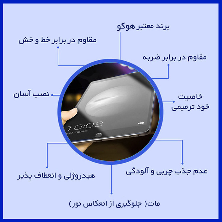 جلوگیری از انعکاس نور , قابلیت نصب آسان , مقاوم در برابر چربی و اثرانگشت , مقاوم در برابر خط و خش