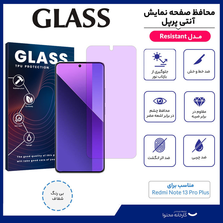 محافظ صفحه نمایش آنتی پرپل گلس مدل Resistant مناسب برای گوشی موبایل شیائومی Redmi Note 13 Pro Plus