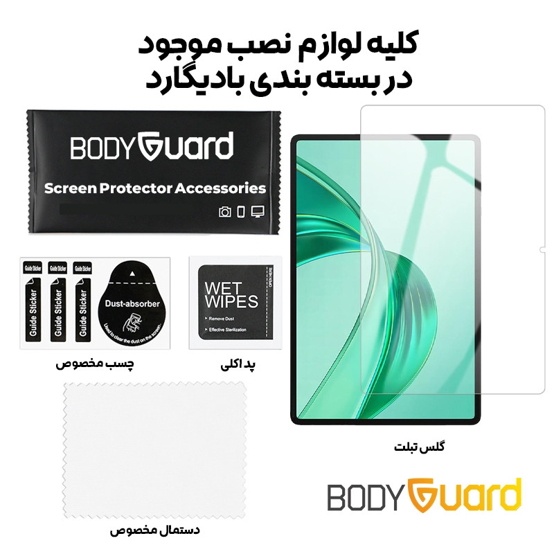 گلس شیشه ای تبلت - دستمال پارچه ای - پد الکلی - چسب پرزگیر