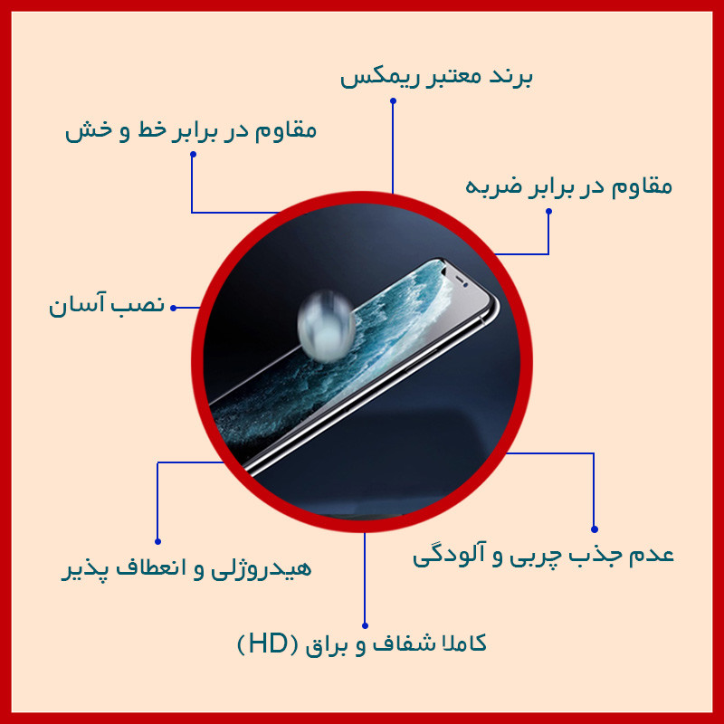برند معتبر ریمکس – یکدست و بدون حاشیه رنگی - خودترمیم - تشخیص سریع اثر انگشت - سرعت تاچ بالا - نصب آسان - کیفیت بالا - کاملا شفاف - قبل از نصب کلیپ آموزشی را در اینترنت مشاهده فرمایید